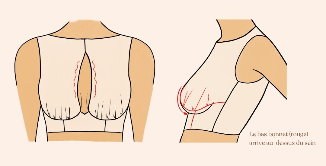 • le bas bonnet arrive trop haut par rapport au dessous de sein