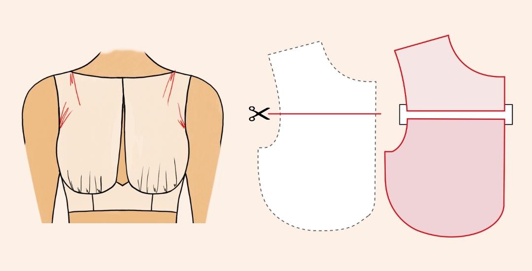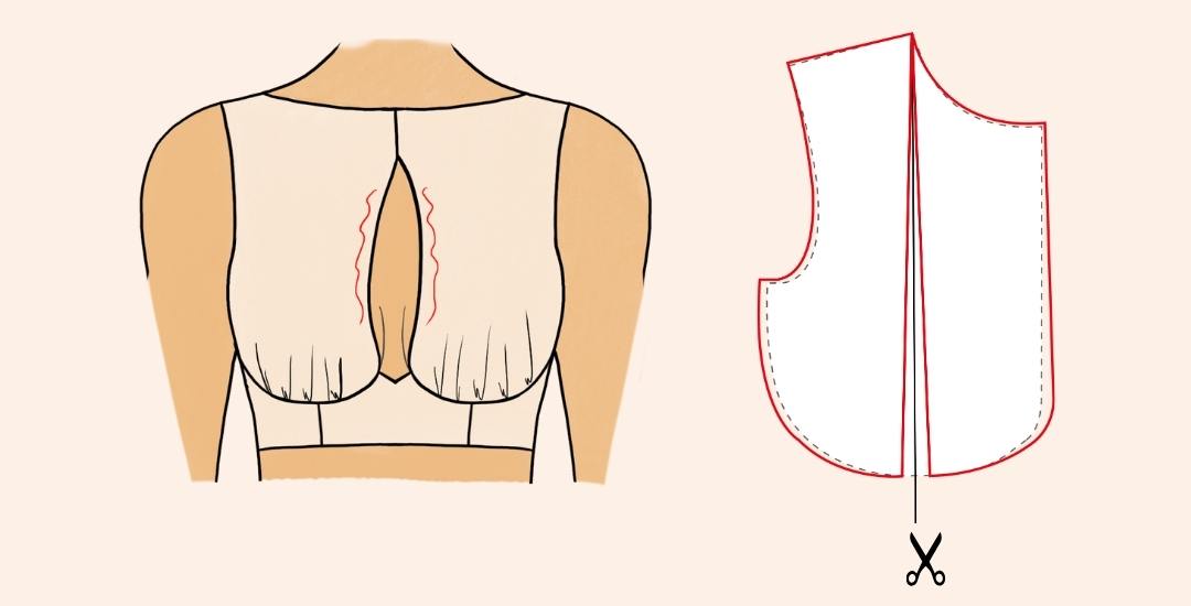 Réalise l’ajustement de stature. Sur ta toile, plisse le long de la ligne de carrure, de sorte que ton milieu-devant + emmanchure soit suffisamment tirés.