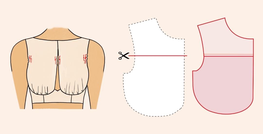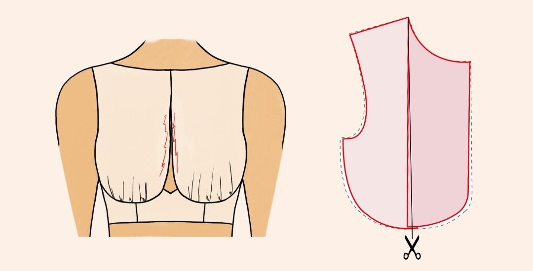 Réalise l’ajustement de stature. Coupe ta toile le long de la ligne de carrure. Ajoute un morceau de toile pour combler la valeur qu’il sera nécessaire d’ajouter.