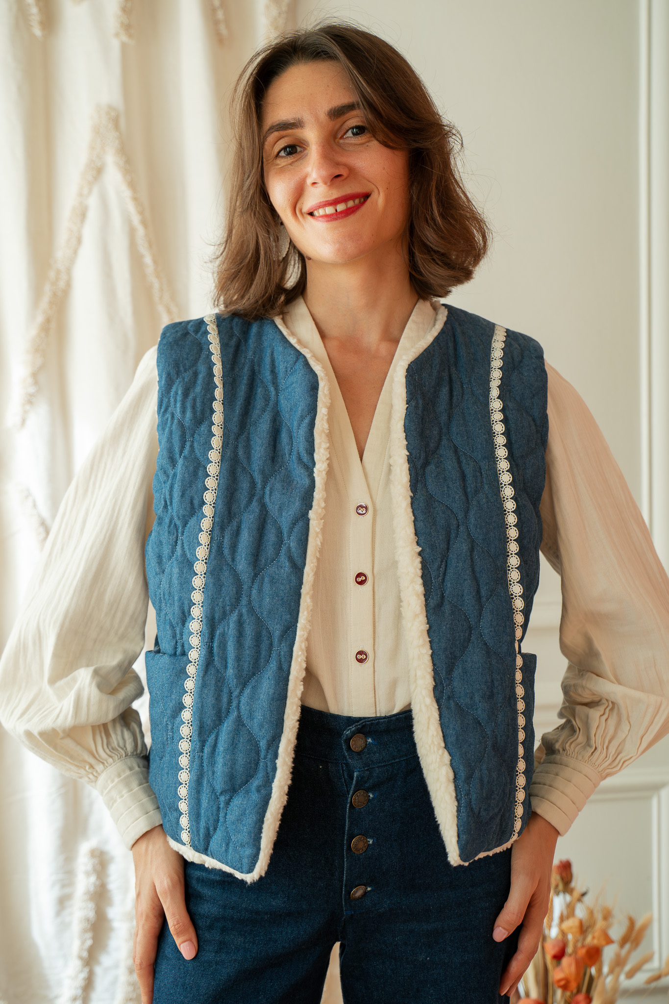 Jaipur has been designed as a quilted jacket that can be worn all year round, thanks to its two versions: with or without sleeves. Of course, the pattern can be sewn in many other types of fabric: please see the “Fabric Advice” section below.